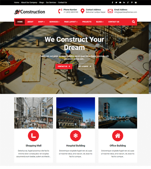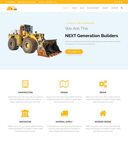 如果您正在寻找富有创意、功能强大且易于使用的房地产主题,那么您的搜索就在 Construction Light 结束。这是一个免费的房地产 WordPress 主题,可用于为建筑和其他相关企业(如承包商、房地产经销商、建筑公司等)创建一个很棒的网站。