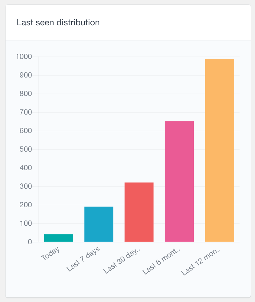 用户洞察的活动模块附带最后一次查看报告。该报告是用户活动日志,显示不同时期内最后登录您网站的用户数量。“最后访问”报告跟踪并创建了最近期间登录用户数量的用户活动日志。这包括今天、过去7天、过去30天和过去12个月这样的时期。本报告有助于理解用户参与度和识别活动趋势。